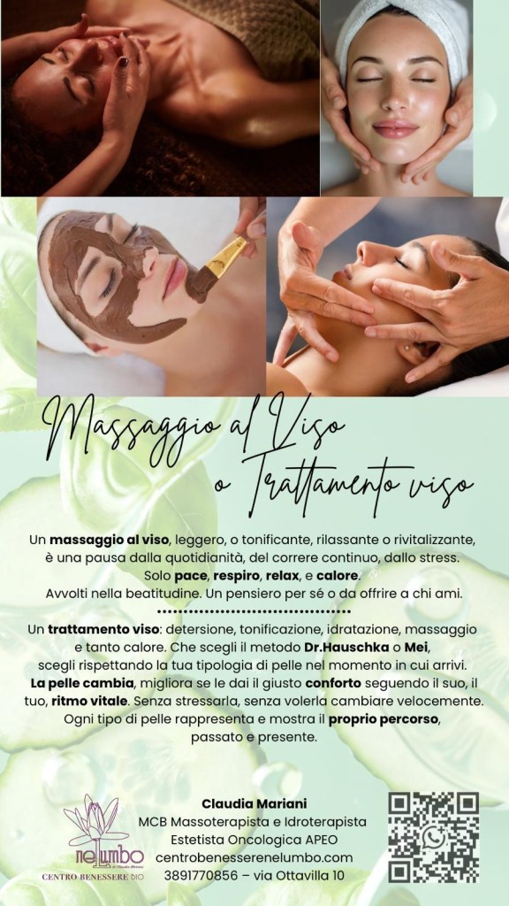 Uno spazio per prenderti cura di te in modo semplice, lasciati coccolare dal ritmo di un sottofondo musicale rilassante, dagli aromi degli oli essenziali, da una professionista nel campo dei trattamenti viso e corpo, di benessere e terapeutici. Nel calore del conforto di chi ti ascolta.